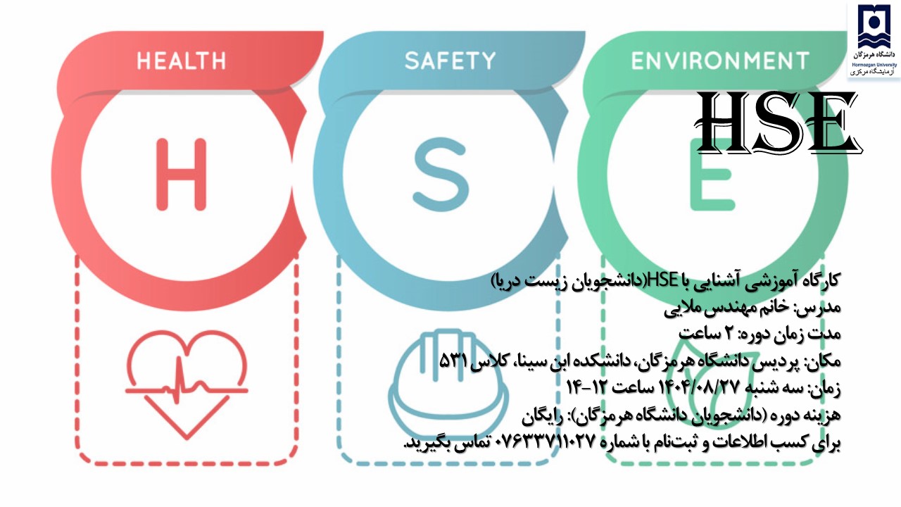 اطلاعیه زمانبندی کارگاه آشنایی با HSE برای ورودی های جدید دانشکده